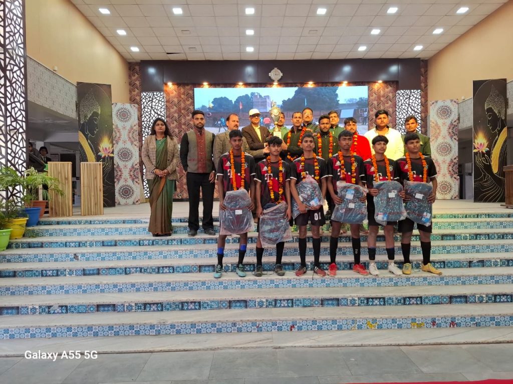 कार्यक्रम का शुभारंभ मुख्य अतिथि मेजर दिनेश सिंह (अध्यक्ष,जिला फुटबॉल संघ) द्वारा किया गया। उन्होंने खिलाड़ियों को संबोधित करते हुए कहा कि फुटबॉल केवल एक खेल नहीं है, यह टीम वर्क, अनुशासन और नेतृत्व की भावना सिखाता है। मेरी आप सभी खिलाड़ियों से अपील है कि आप जीत या हार से ज़्यादा खेल भावना को महत्व दें। मैदान पर अपनी पूरी ताकत लगाएँ, लेकिन हमेशा सम्मान के साथ खेलें । उन्होंने इस आयोजन के लिए विद्यालय प्रबंधन की भी सराहना की। इस अवसर पर अरविंद सिंह(सचिव, जिला फुटबॉल एसोसिएशन) भी मौजूद रहे।